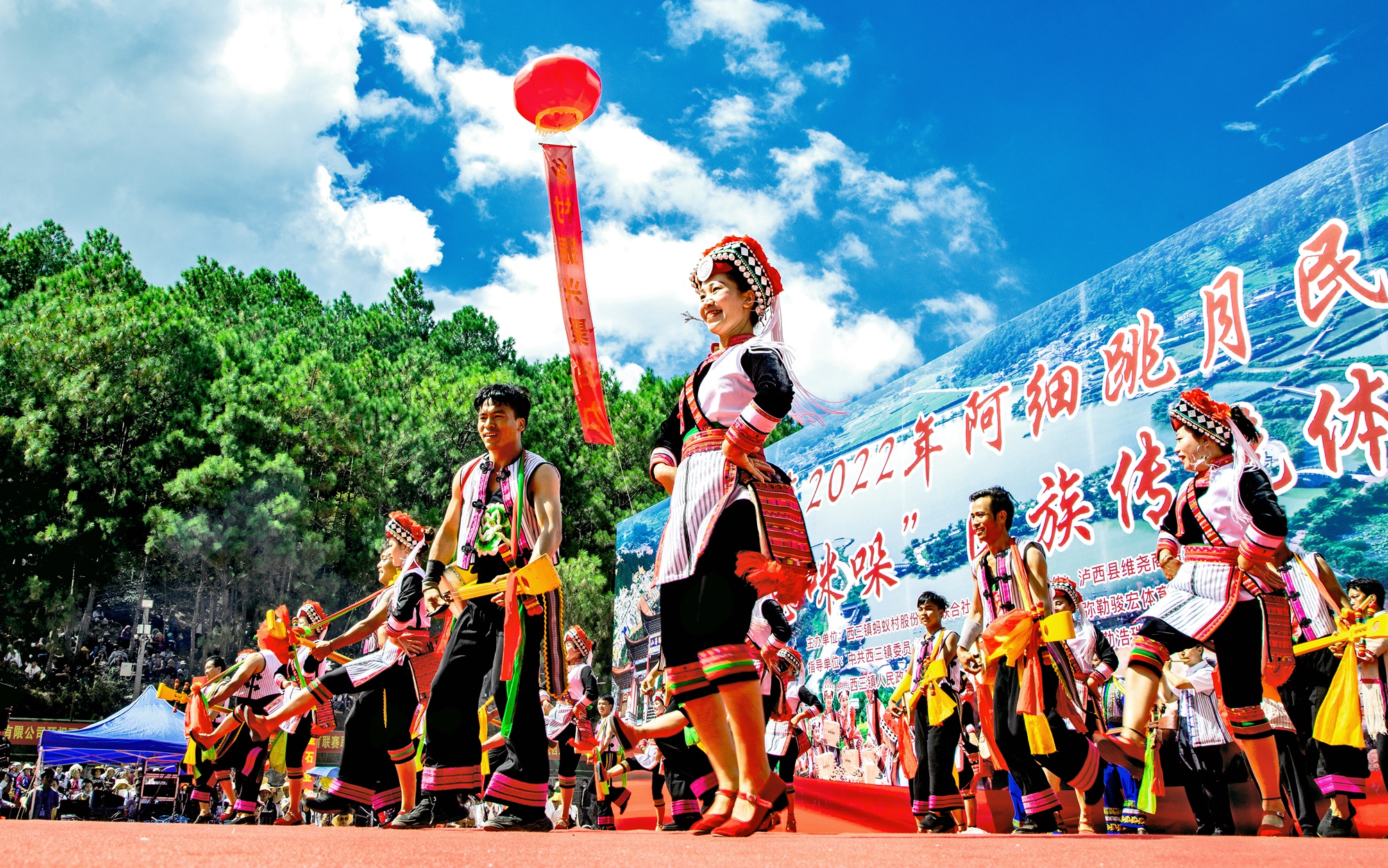 (五)深度交融,搭建民族团结连心桥。坚持把加强各民族交往交流交融作为巩固示范创建成效的根本途径,着力建立各民族相互嵌入式的社会结构和生活环境,构建平等团结互助和谐的社会主义民族关系,促进各族群众广泛交往、全面交流、深度融合。一是“三项行动”促融合。认真落实开展各民族青少年交流、各民族互嵌式发展、旅游促进各民族交往交流交融“三项行动”,全镇10所中小幼学校全部实行混合编班、混合住宿,2022年接待游客71.69万人次,帮助群众解决困难问题2000余件。二是空间互嵌促融居。统筹乡村建设布局规划和公共服务资源配置,营造环境氛围,全面实现各民族在空间、文化、经济、社会、心理等方面的全方位嵌入,全镇各民族大杂居、大融合、互通婚,共居住、共学习、共生活、共劳动、共经商、共娱乐,能够亲密无间地交往、畅通无阻地交流、自然而然地交融,形成各民族大杂居、小聚居的分布格局,实现了城乡协调、区域协调和民族之间协调。三是文化互嵌促自信。在村(社区)、村小组以传承中华优秀传统文化为重点,以举办摔跤、阿细跳月等各种民俗民间文化活动为契机,喜迎中外游客,全面促进各民族广泛交往、全面交流、深度交融,文化自信和民族自豪感不断增强。四是经济互嵌促发展。以产业发展、外出务工、乡村旅游等形式促进各民族共同就业、共同劳动、共同增收,以全域旅游统领全镇经济社会发展,顺利创建锦屏山风景区、可邑小镇2个国家AAAA级风景区,1个云南特色小镇(可邑小镇),2022年实现旅游总收入1600余万元。