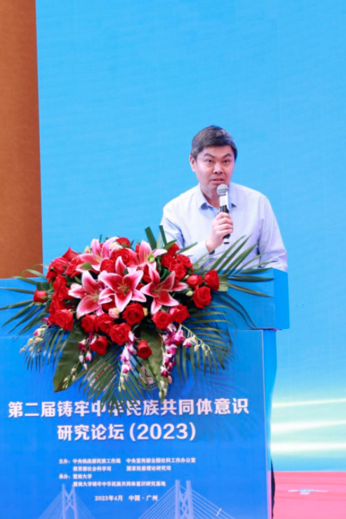 中国社会科学院民族学与人类学研究所所长王延中从习近平总书记关于加强和改进民族工作的重要思想的总体背景、主要内容等方面出发,讲述了新时代以来中国共产党不断增强对民族工作的重视,持续推进中华民族共同体意识建设。他认为,“民族工作是事关国家主权安全发展利益的重大问题,既是重大理论问题,也是重大建设问题”。他强调要正确理解与把握中华民族共同体建设的若干重大关系,并通过分析“中华民族共同体理论”与“人类命运共同体理论”的异同来深入理解和阐释习近平加强和改进民族工作思想和新时代党的民族理论的重大创新。