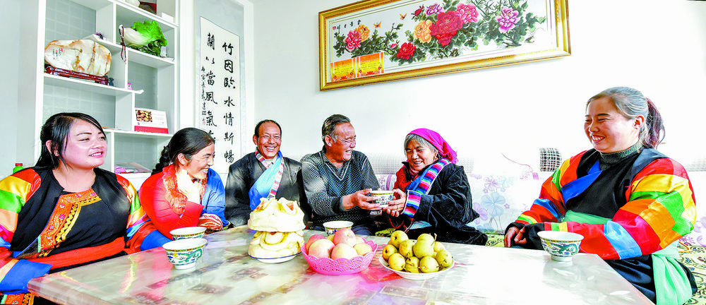 秋日暖阳里,海北藏族自治州海晏县金滩乡东达村的各族村民围在一起拉家常话团结,三三两两的孩童在旁边追逐嬉戏。十年来,东达村坚定不移沿着习近平总书记指引的方向奋勇前进,团结带领全村村民共同叩响幸福美满生活的大门,实现了安全饮水管网全覆盖,先后开设了幼儿园、卫生室、文化活动室、老年福利院等便民设施,打造了民族团结进步创建展厅,成为远近闻名的“民族团结村”“乡村振兴示范村”。