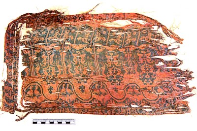 青藏高原北部丝绸之路沿线出土的吐蕃时期中亚风格的丝绸。瑞士阿拜格基金会供图