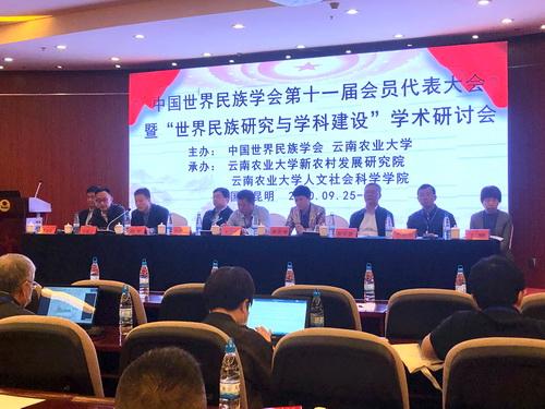 2020年9月26日至27日,中国世界民族学会第十一届会员代表大会暨世界民族研究与学科建设学术研讨会在云南农业大学召开。本次大会由中国世界民族学会和云南农业大学联合主办,云南农业大学新农村发展研究院、人文社会科学学院承办,来自中国社会科学院、国家民委研究室、中央民族大学、中国现代国际关系研究院、延边大学、内蒙古大学、兰州大学、陕西师范大学、西北大学、上海外国语大学、复旦大学、浙江大学、厦门大学、四川大学、西南民族大学、贵州省民族研究院、贵州民族大学、广西民族大学、云南省社会科学院、云南大学、云南民族大学、云南农业大学等40多个高校与科研机构的近百位专家、学者参会并作会议交流。会员代表大会通过选举产生了中国世界民族学会新一届理事会。