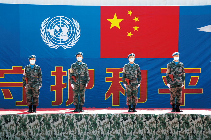 2020年9月18日,《中国军队参加联合国维和行动30年》白皮书发布,以政府重要文件的形式向世界宣示:中国始终是世界和平的建设者、全球发展的贡献者、国际秩序的维护者,中国军队始终是维护世界和平的坚定力量。图为2020年10月1日,中国第三批赴苏丹达尔富尔维和直升机分队140名官兵被联合国和非洲联盟驻苏丹达尔富尔联合特派团(联非达团)授予“和平荣誉勋章”。 新华社发 余豪/摄
