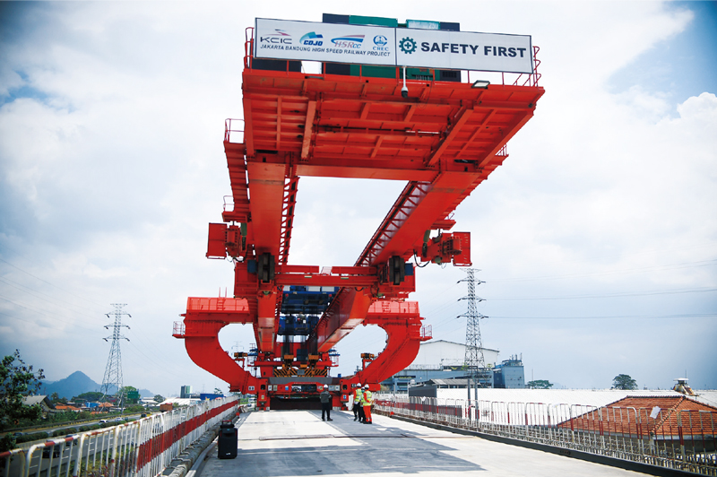印度尼西亚雅万高铁项目是“一带一路”倡议的标志性工程和印尼国家战略项目。图为2020年9月3日,雅万高铁4号梁场进行架梁作业。 新华社发 祖卡南/摄