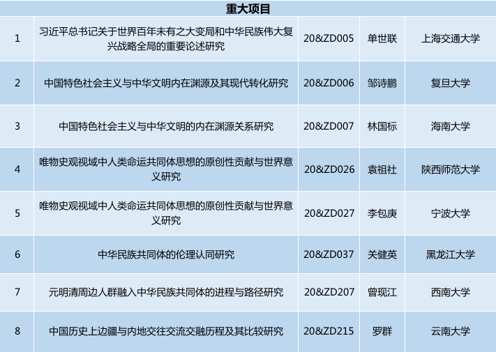 2020年度社科基金铸牢中华民族共同体相关立项项目