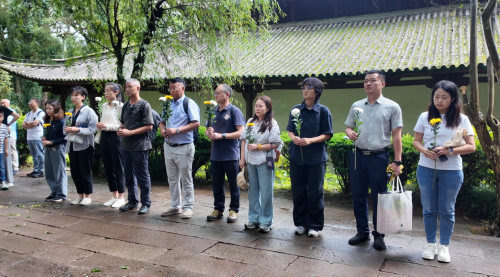 滇西抗战纪念馆是全国爱国主义教育示范基地、全国重点文物保护单位、海峡两岸交流基地。调研组一行在展馆中通过丰富的实物、详实的图片和珍贵的文字资料,深刻体会了“抗战输血线”——滇西公路的艰难修建历程。随后,调研组步入展示中国远征军、同盟军和滇西百姓与日军惨烈战斗的展览区域。最后,调研组来到国殇公墓,并在墓碑前献上鲜花,表达对先烈们的深切缅怀与崇高敬意。