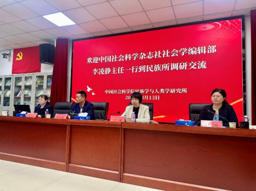 2026年3月14日上午,中国社会科学杂志社社会学编辑部李凌静主任一行到民族所座谈交流。民族所党委书记丁赛、副所长董文柱出席会议,会议由民族所副所长彭丰文主持,民族所各研究室、编辑部的主任、负责人及科研人员共二十余人参加座谈会。