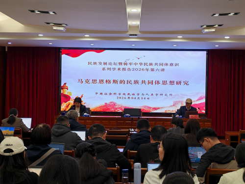 中国社会科学网讯 4月14日,由中国社会科学院民族学与人类学研究所(以下简称“民族所”)主办的民族发展论坛暨铸牢中华民族共同体意识系列学术报告2026年第六讲活动在京举行。复旦大学哲学学院教授、民族研究院院长邹诗鹏应邀主讲“马克思恩格斯的民族共同体思想研究”。民族所党委书记丁赛主持讲座。